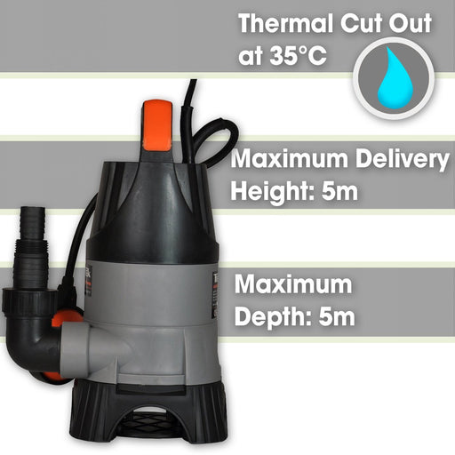 Delivers 250-Litres/min pump rate Tough durable corrosion proof materials Can be used for pond cleaning, pools & flooded areas Automatic float...