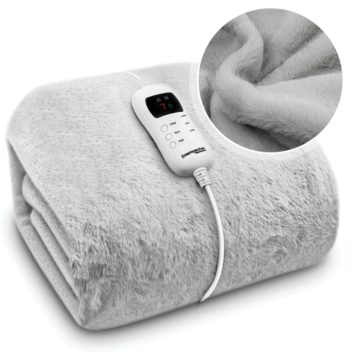 Dreamcatcher Deluxe Electric Heated Throw Faux Fur Light Grey Soft Heated Blanket 160 x 130cm