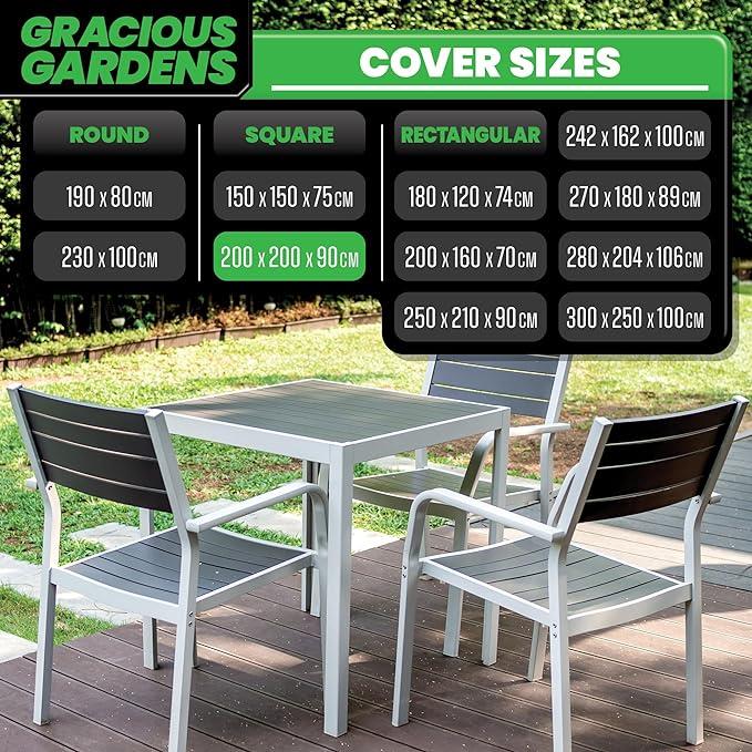 Gracious Gardens Garden Furniture Cover 200 x 200 x 90cm Square Heavy Duty Oxford Fabric