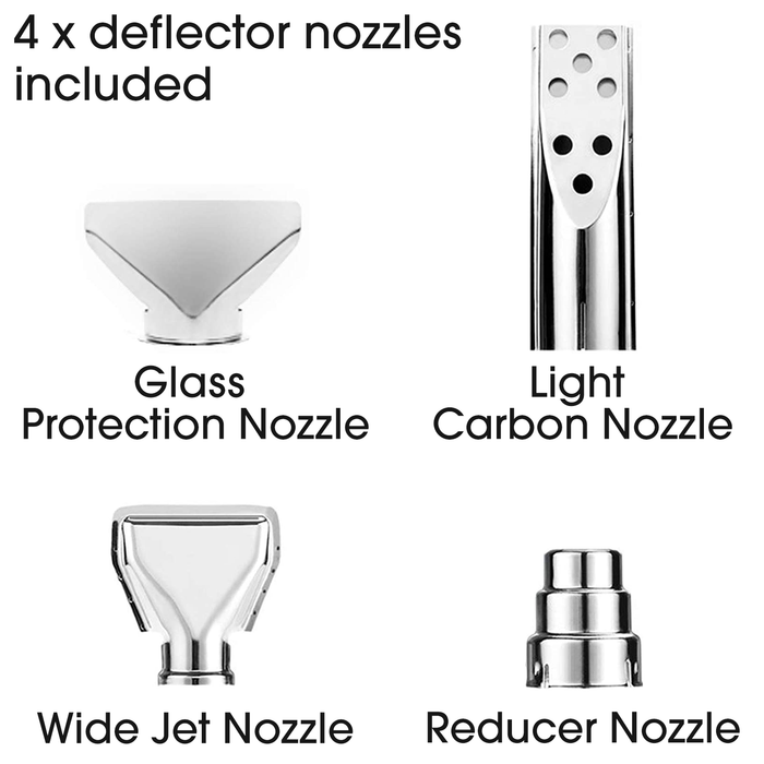 The Terratek 2000W Hot Air Gun comes included 4 x corrosion resistant deflector nozzles: